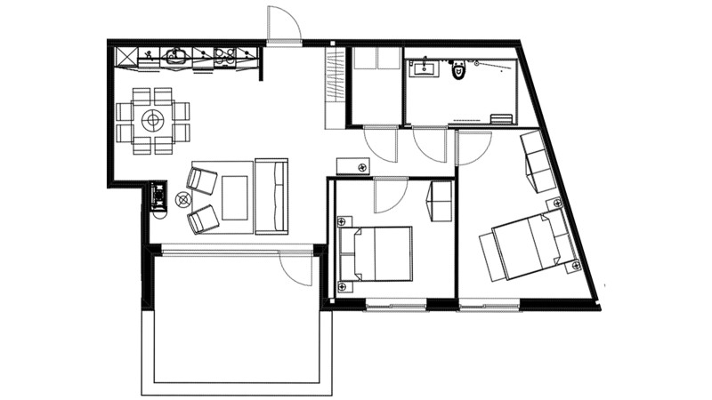 Skistar Lodge Hemsedal 4 bädd Topview lägenhet 5104. Som namnet antyder så ligger denna lägenhet på översta våning. Högt i tak med stora fönster som ger fantastisk utsikt mot backarna. Huskropparna är sammankopplade med en glasbro på våning 2. Vidare därigenom kommer ni också in till huset där ni finner reception, restaran, skiduthyrning med mera.
